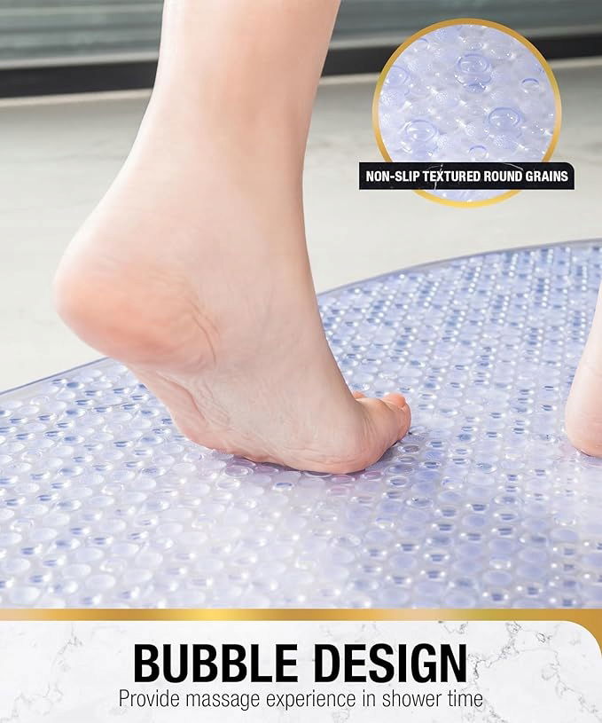 - Jakość premium: Podnieś swoje wrażenia z kąpieli dzięki naszym antypoślizgowym matom kąpielowym wykonanym z miękkiego materiału PCW. Ta owalna mata do wanny ma konstrukcję powierzchni bąbelkowej i luksusowe uczucie masażu stóp podczas prysznica, idealna dla osób starszych, niemowląt i małych dzieci.