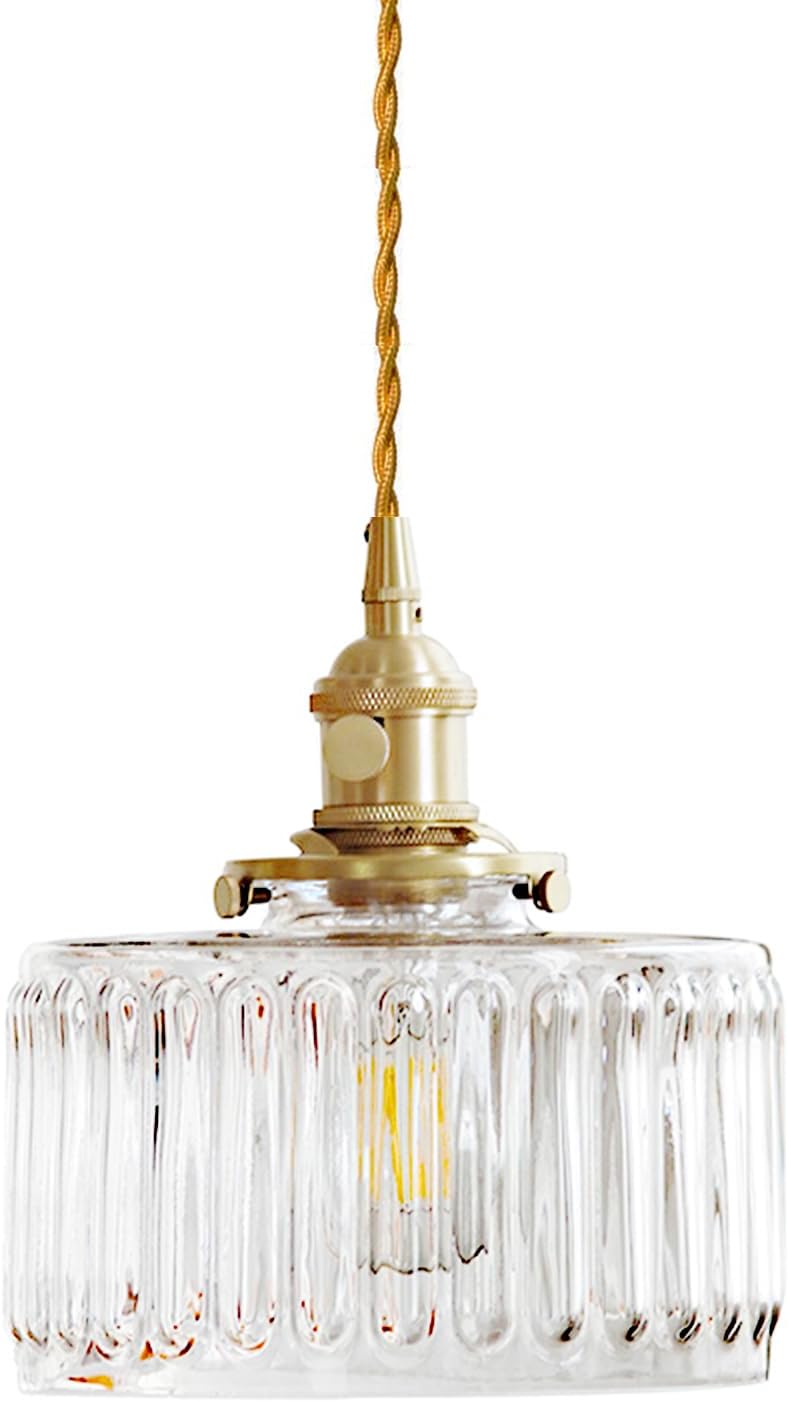 HJXDtech Industrial Vintage E27 mosiężna lampa wisząca ze szkła żebrowanego, retro, elastyczna, skręcana, lampa sufitowa, loft, bar, lampa wisząca (przezroczysta)