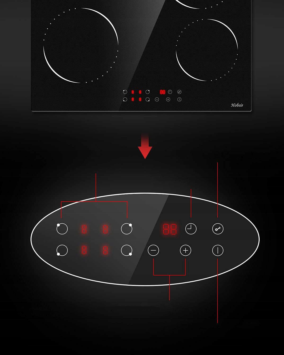 Hobsir płyta ceramiczna 4-palnikowa do zabudowy 9 poziomów mocy 6000W 60 cm