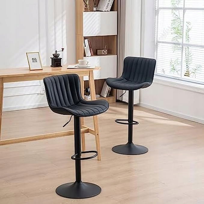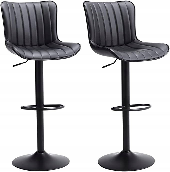 Kidol & Shellder Stołek barowy, czarny, zestaw 2 sztuk, kuchnia przemysłowa, obrotowa poduszka z regulacją wysokości, z wysokim oparciem, sztuczna skóra, szybki montaż