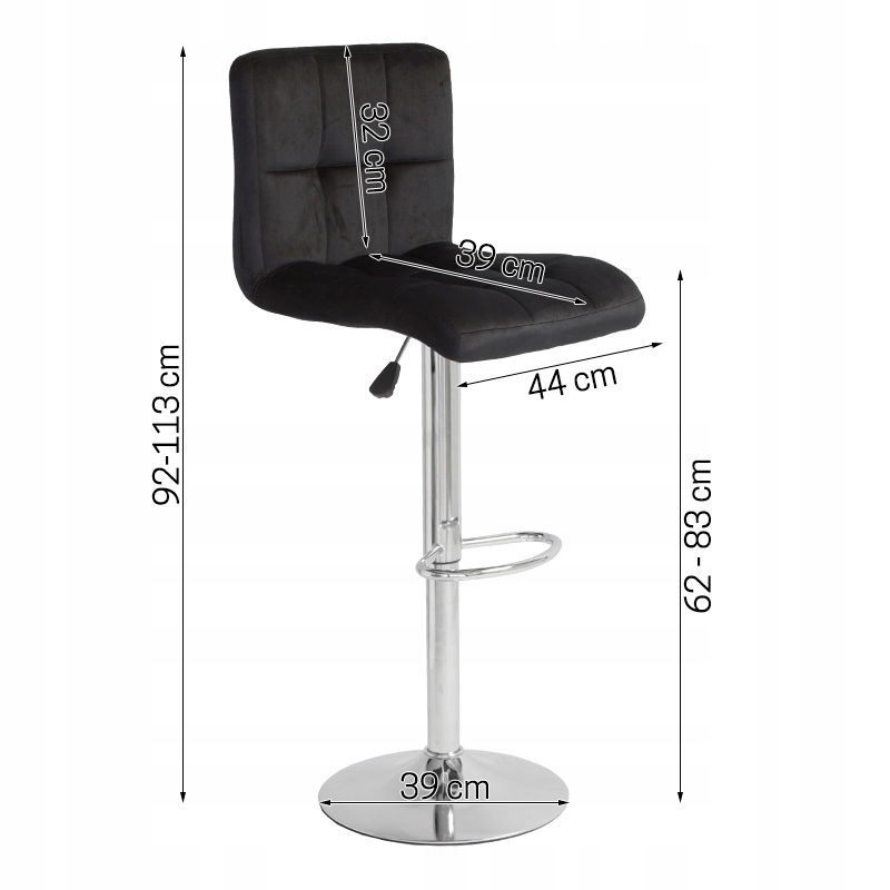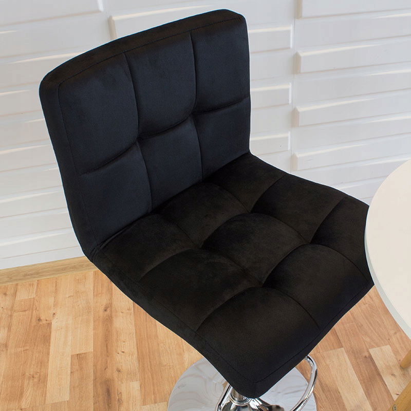 HOKER Krzesło barowe pikowane welur czarne metalowa noga podnośnik 703PG