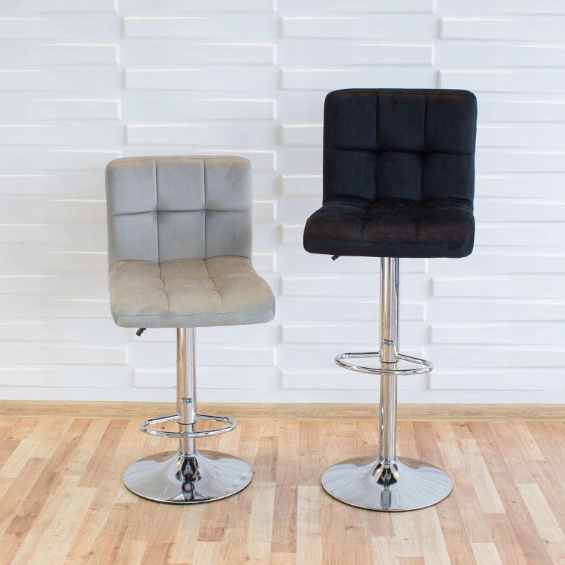 Hoker welurowy na metalowej chromowanej nodze z regulacją wysokości.