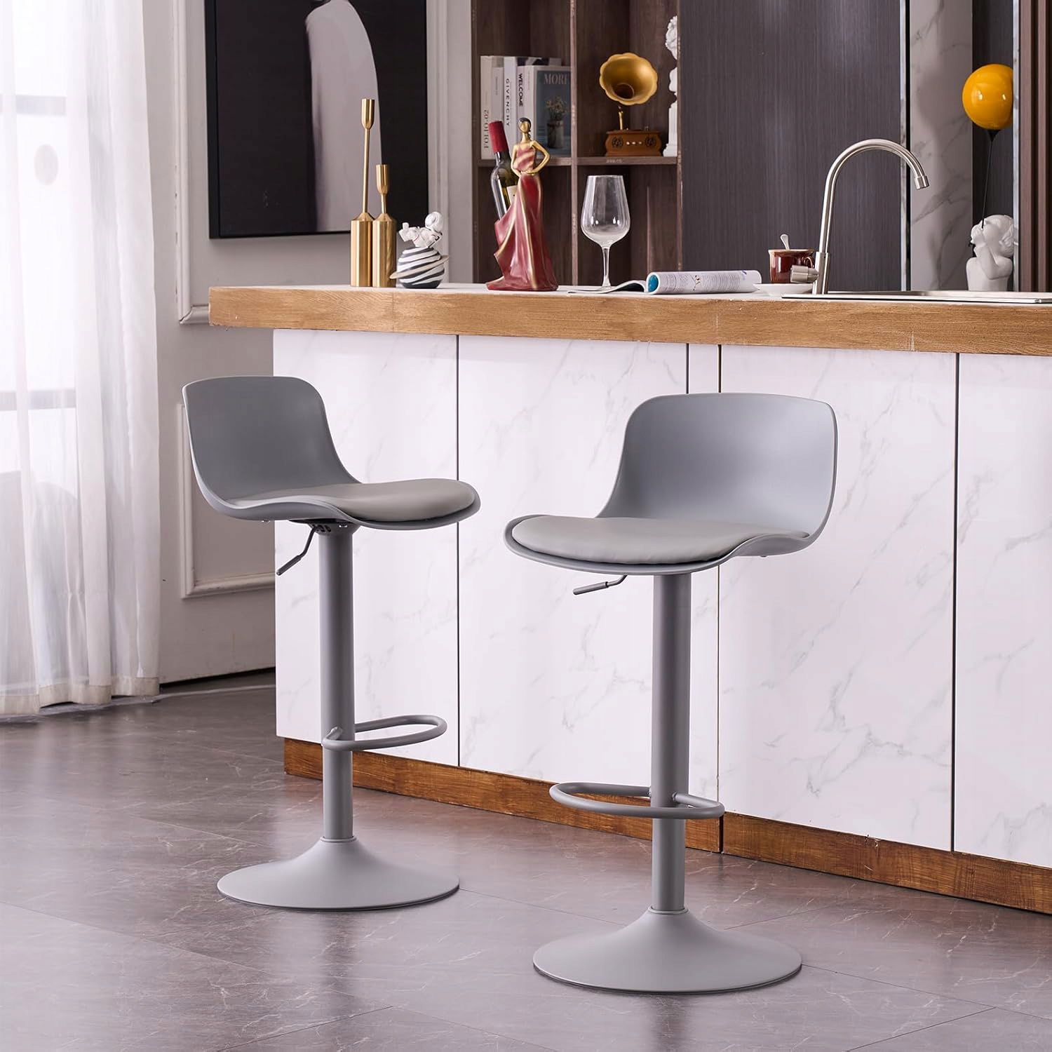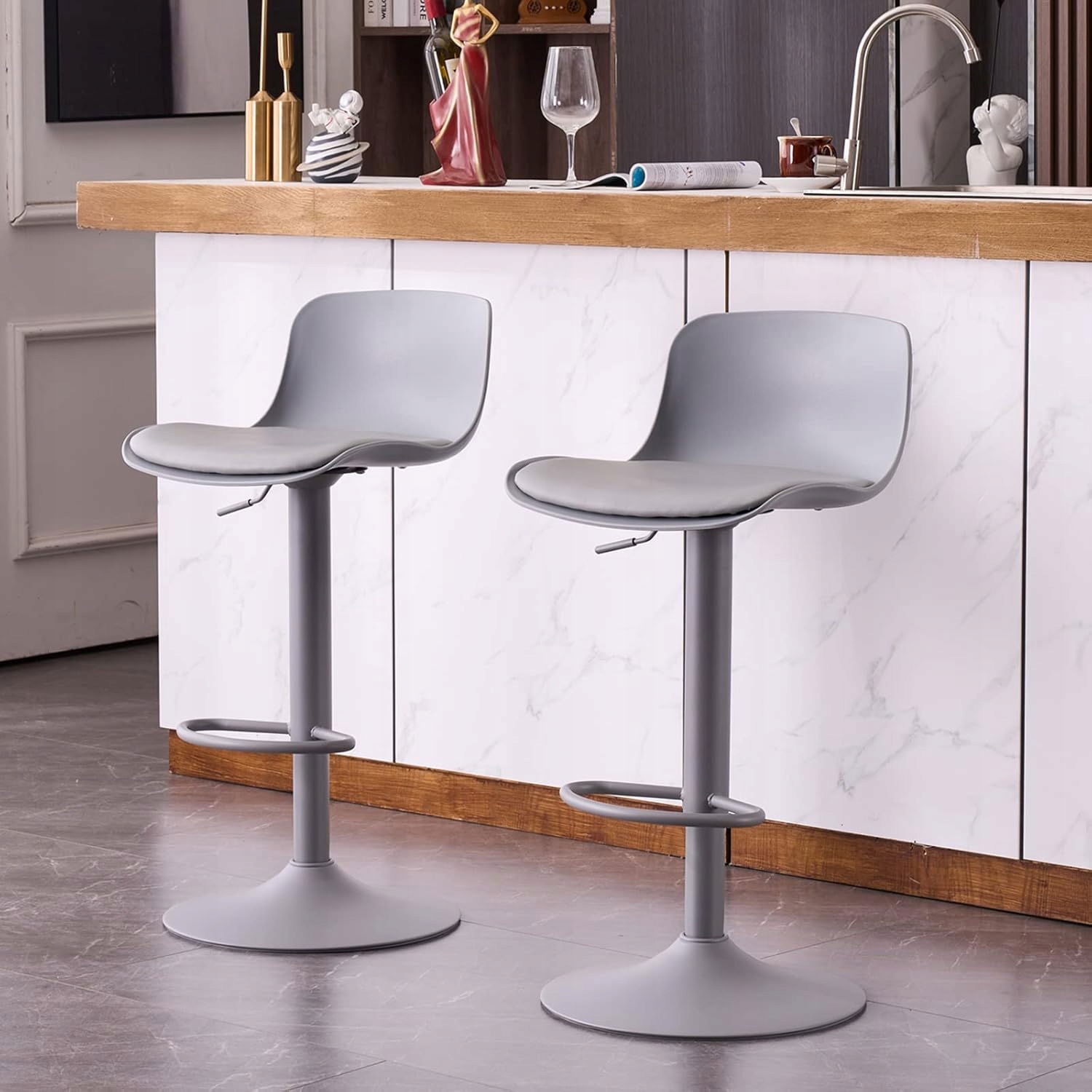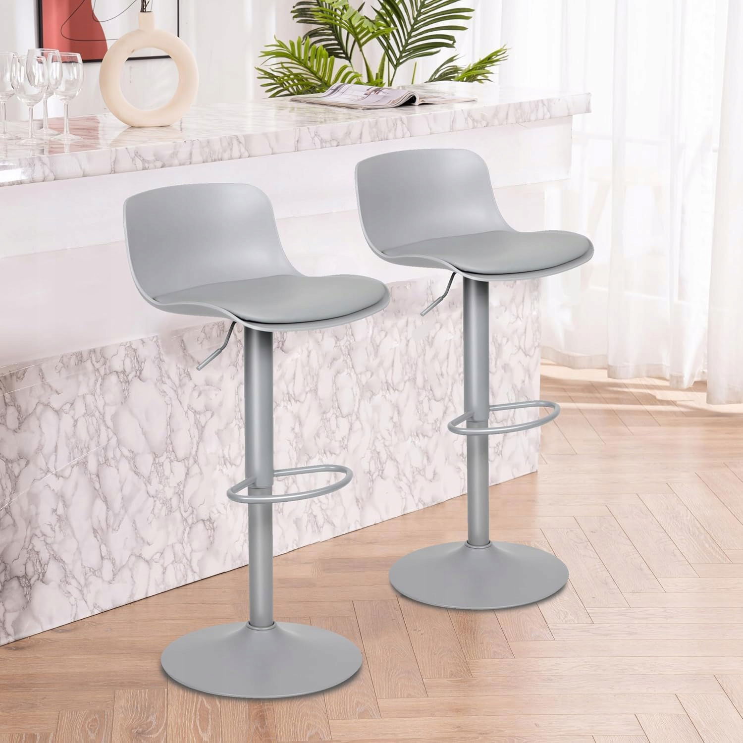 Hokery 2 Sztuki Szare Obrotowe Regulacja Wysokości Krzesła Barowe
