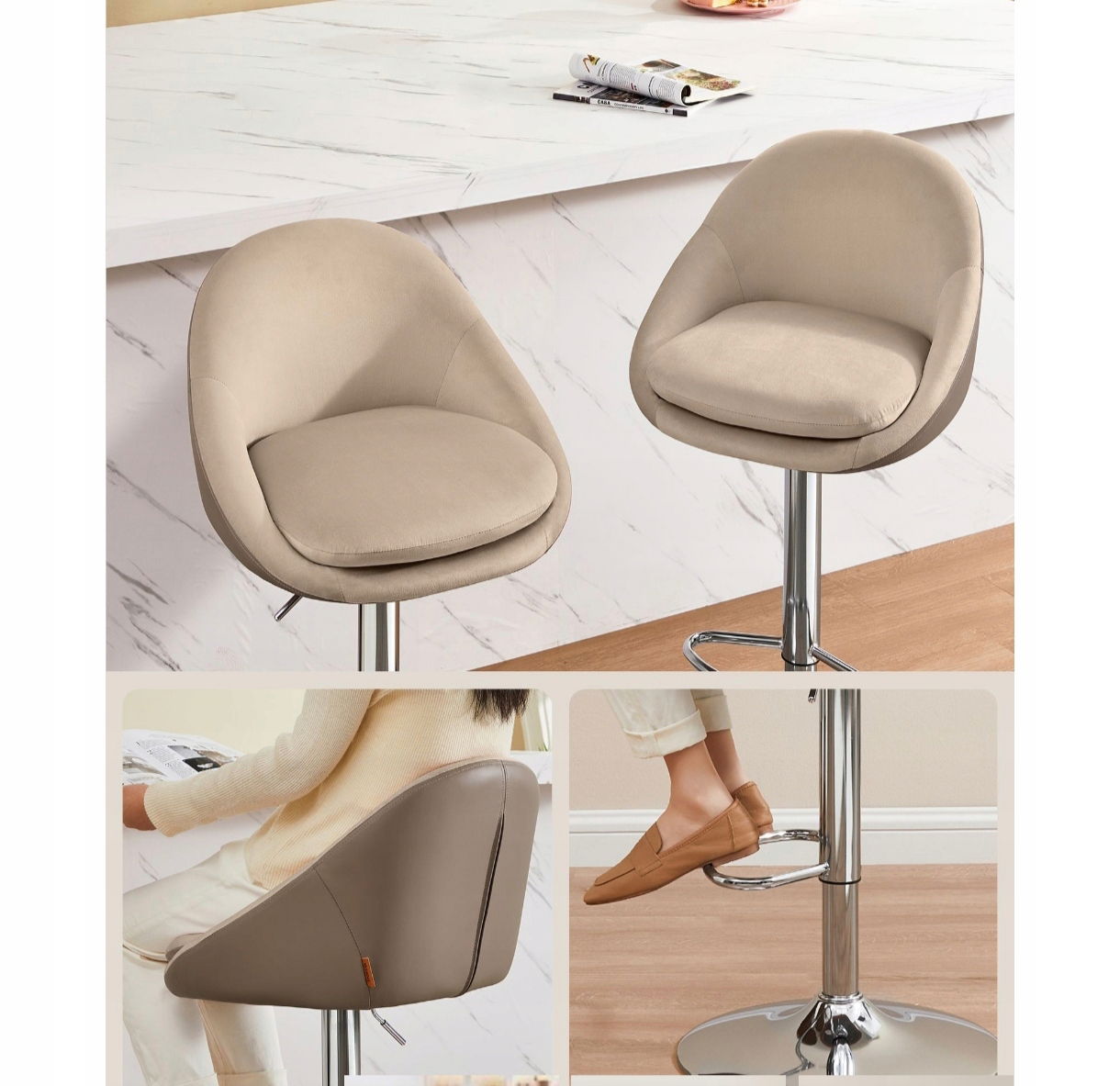 Dodaj do swojego wnętrza komfort i szyk dzięki tym stylowym krzesłom barowym SONGMICS. Miękkie aksamitne siedzisko i regulowana wysokość zapewniają wygodne miejsce do siedzenia przy kuchennym blacie, domowym barze czy wyspie kuchennej. Solidna konstrukcja i praktyczne rozwiązania sprawiają, że to idealny wybór na lata.