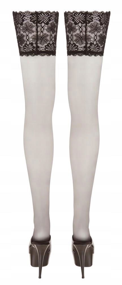 Pończochy damskie wzorzyste z filigranową koronką o szerokości 15 cm. Silikonowe wzmocnienie na końcu dla idealnego, antypoślizgowego dopasowania! 20 den. Certyfikat Oekotex.