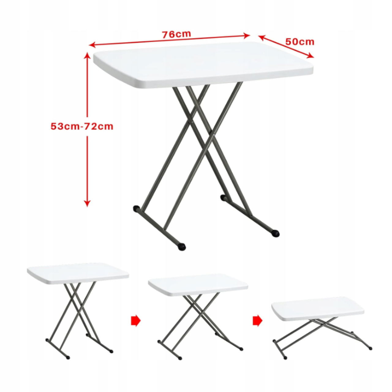 ✅ Kompaktowy rozmiar 76 cm – idealny jako stół dla kilku osób podczas pikników i spotkań.