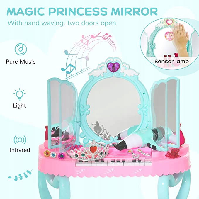 Muzyka i światła: Machaj rękami przed lustrem, aby drzwi zaświeciły się i otworzyły, zabrzmią piosenki i pojawi się magiczna księżniczka.