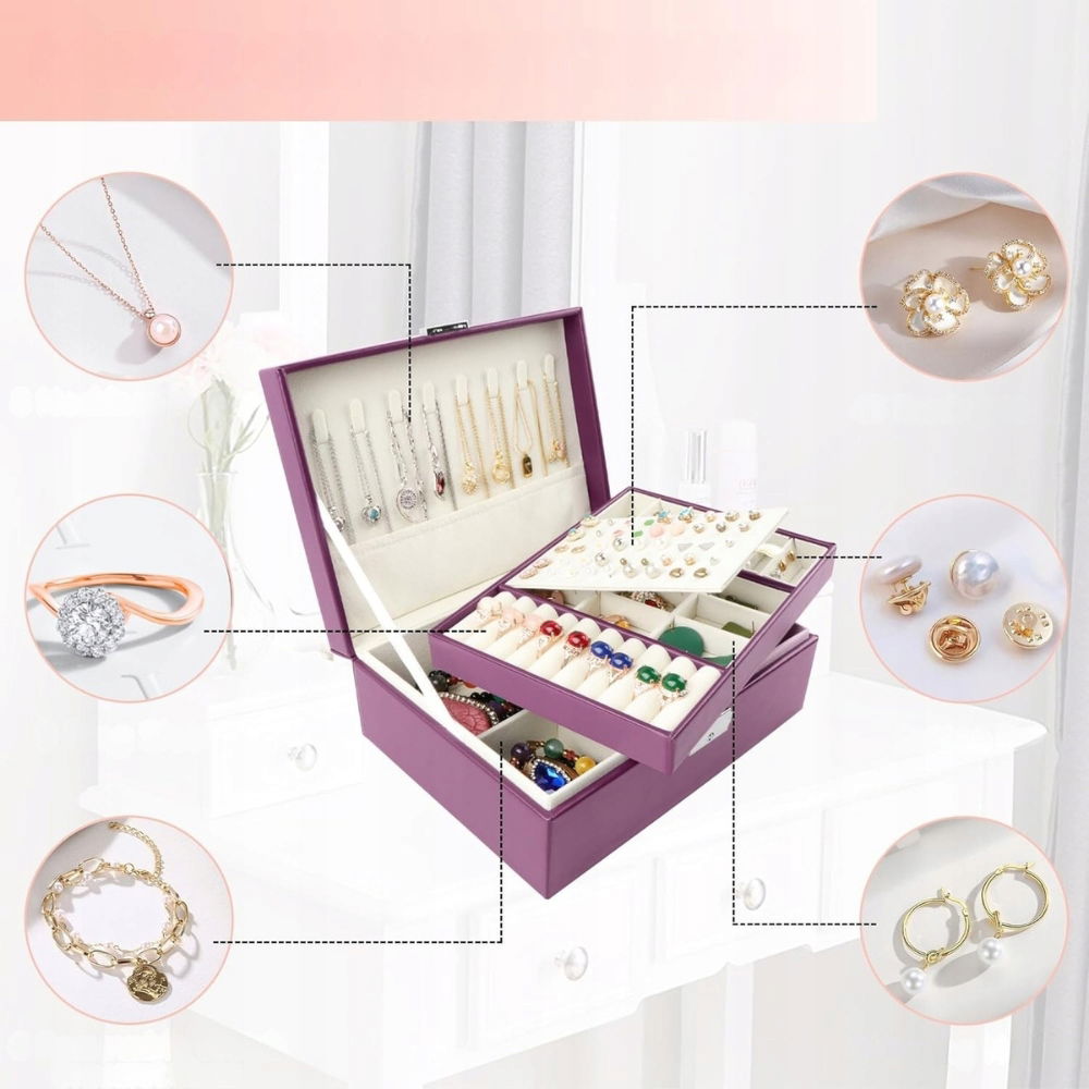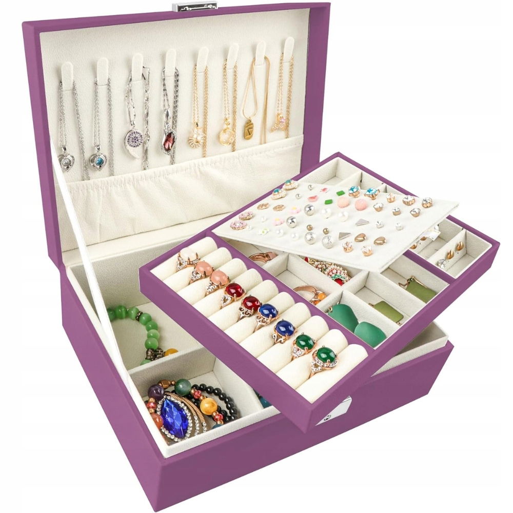 ✨Homeanda Skórzane Pudełko na Biżuterię 2-warstwowe Fioletowe Organizer✨