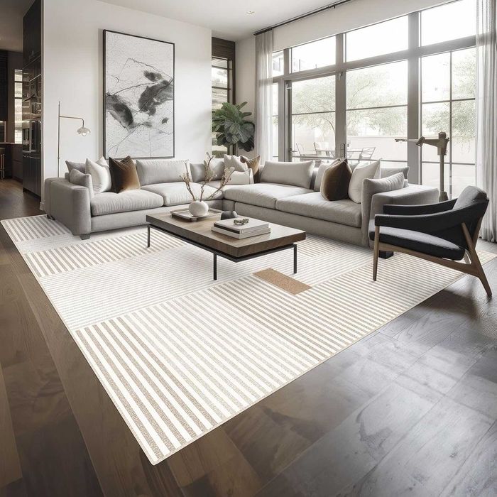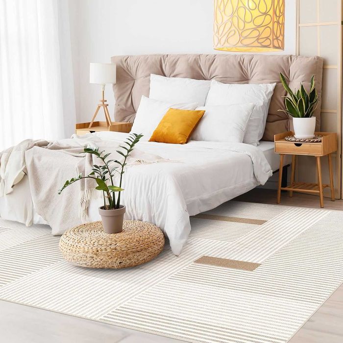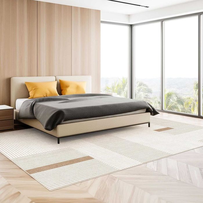 Nowoczesne dywany - Dywan do salonu w nowoczesnym stylu wyróżnia się prostym designem i drobnym splotem, który tworzy spokojną atmosferę. Wykonany jest z wysokiej jakości włókien wełny syntetycznej, które są wygodne dla stóp i praktycznie niestrzępiące się. Ten dywan nadaje się do salonu, sypialni, przedpokoju, jadalni, kuchni, pokoju dziecięcego, gabinetu i biura.