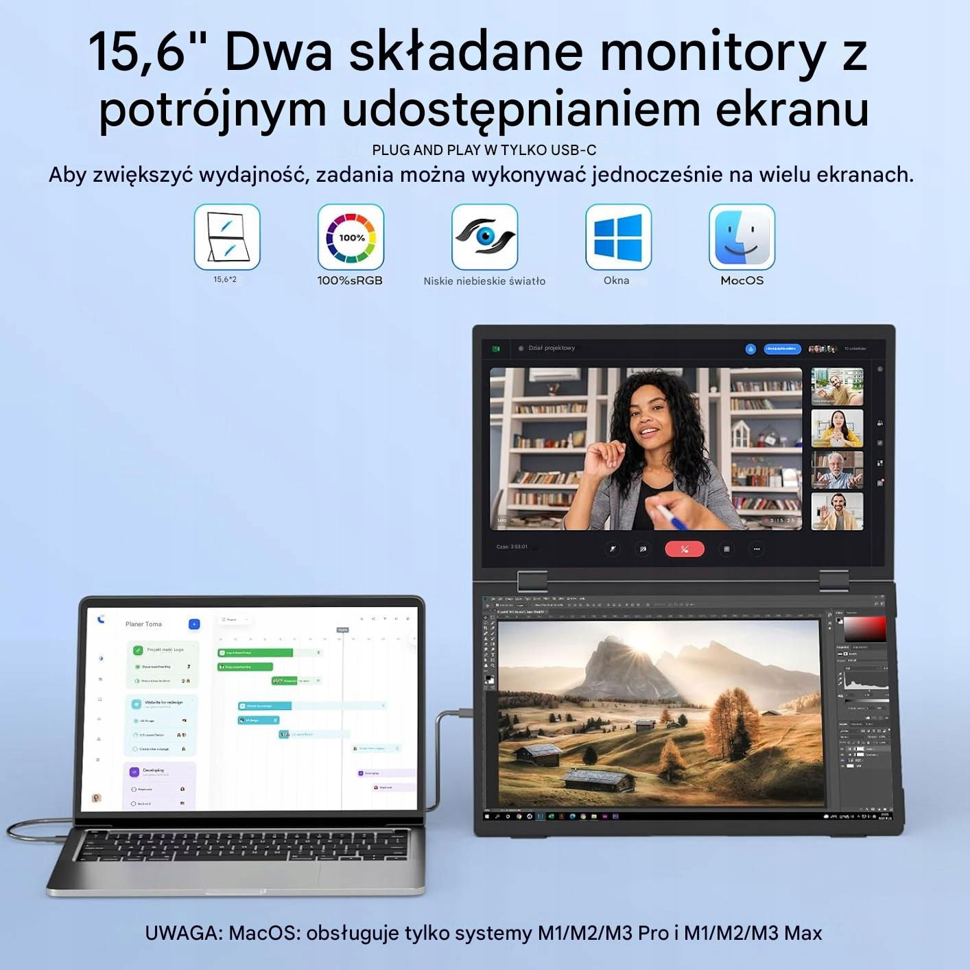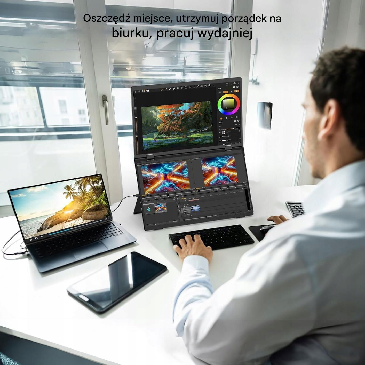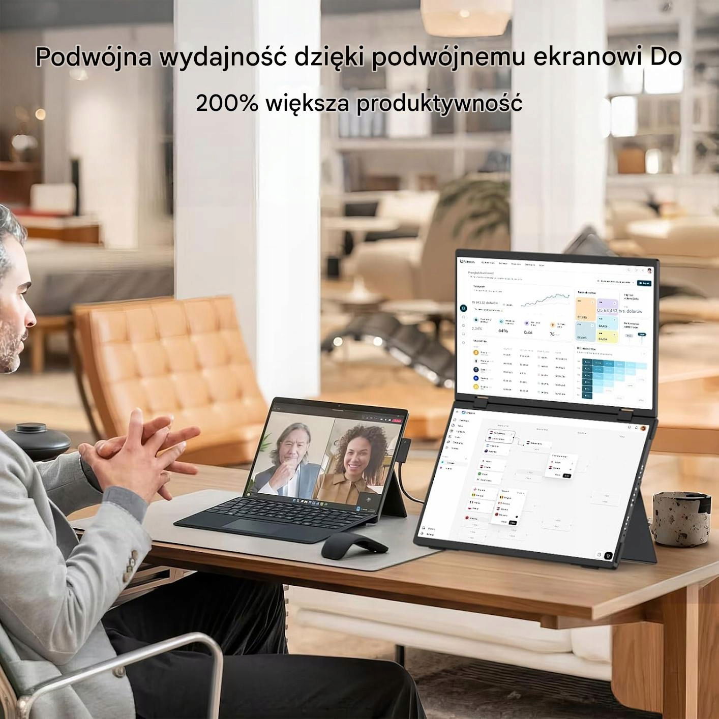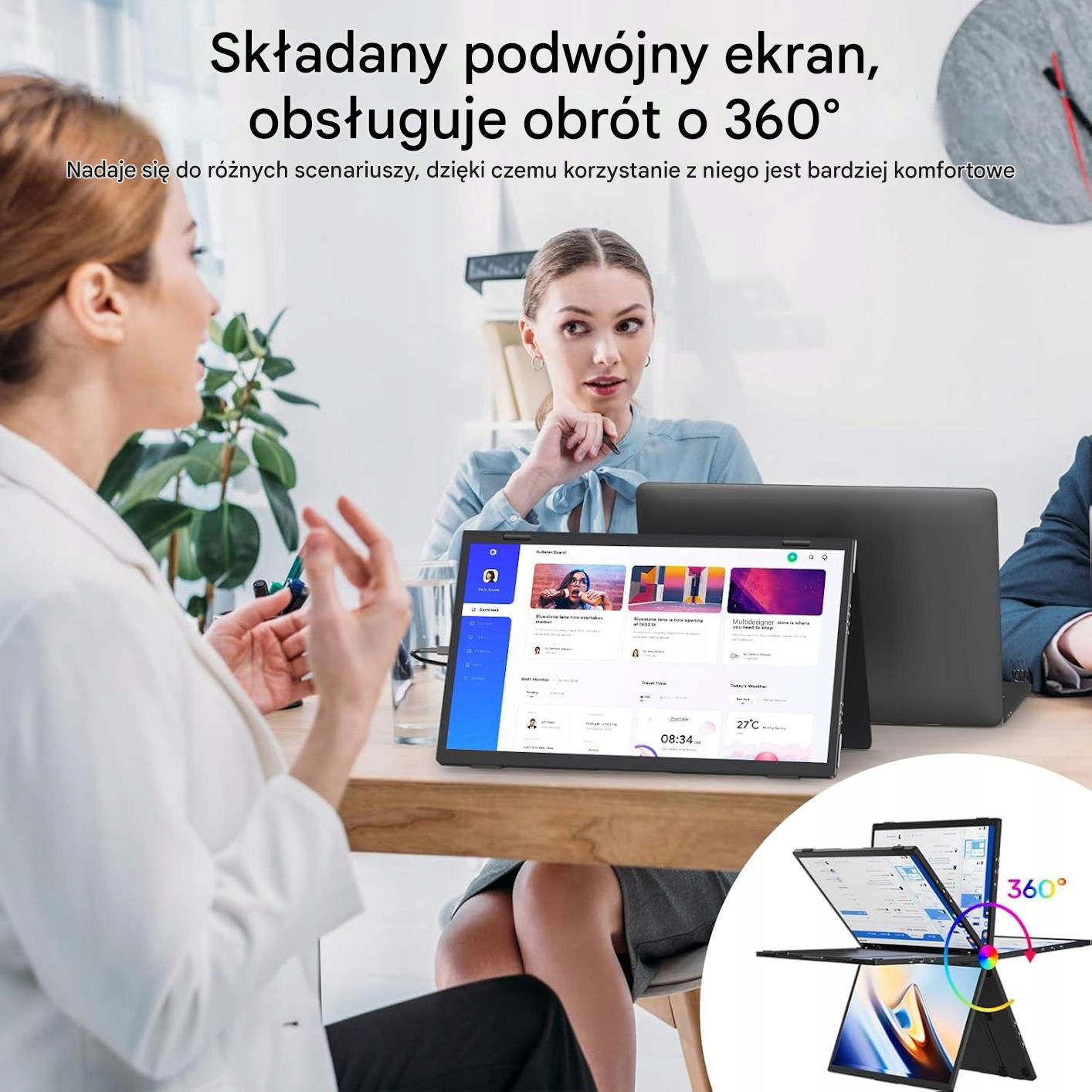 Dziel się z innymi – górny ekran obracany aż o 360° , a boczny można zainstalować pod kątem . Idealne do wideokonferencji, prezentacji i współpracy!