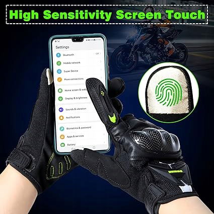 Konstrukcja z ekranem dotykowym: Wiatroszczelne, letnie rękawice motocyklowe męskie są wyposażone w przewodzący materiał na palcu wskazującym i kciuku, co zapewnia większą kontrolę nad smartfonem bez konieczności zdejmowania rękawiczek.