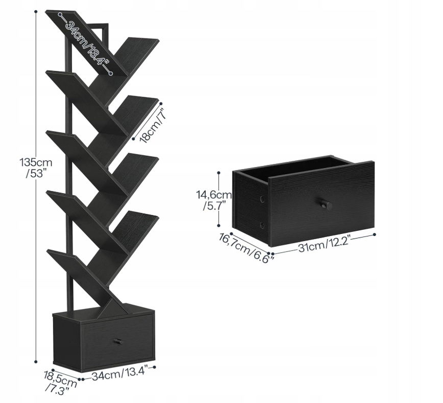 - ✴️Stabilność i bezpieczeństwo: Nasz wybór wysokiej jakości płyty wiórowej i solidnej metalowej ramy tworzy stabilną i trwałą biblioteczkę w kształcie drzewa. Unikalne, trójkątne podparcie podstawy i zabezpieczenie przed przewróceniem zapewniają dodatkową stabilność.