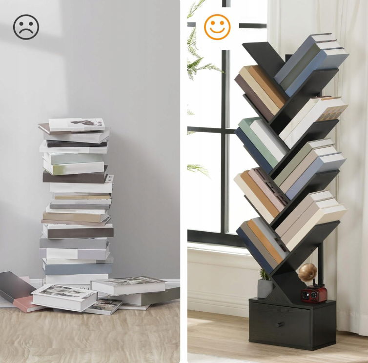 - ✴️Unikalny design: Ten regał na książki ma unikalną konstrukcję w kształcie litery T, która pozwala na optymalne wykorzystanie przestrzeni w pionie. Dendrytyczna struktura o naturalnym uroku i otwarta konstrukcja umożliwiają łatwy dostęp do przedmiotów.
