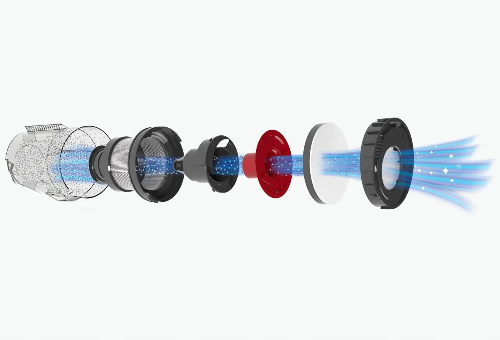 Wychwytując drobny kurz i zanieczyszczenia, 3-warstwowa filtracja zapewnia czyste powietrze wylotowe.