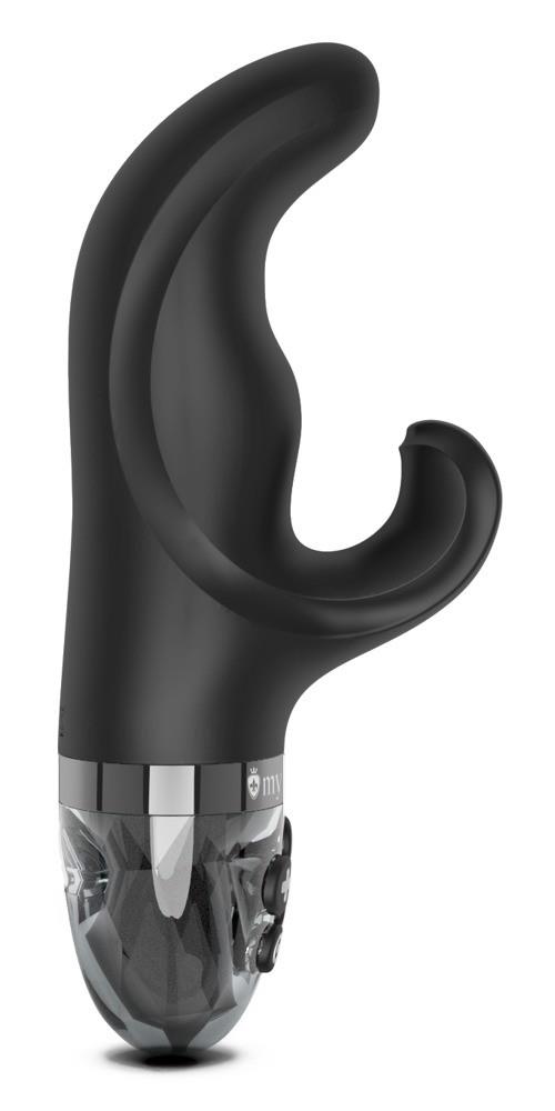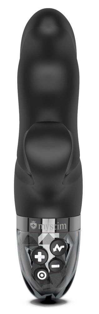 Full pleasure programme with vibrations and electro-stimulation! Handy rabbit vibrator Hop Hop Bop E-Stim by Mystim with a perfectly curved G-spot tip and flexible clitoris stimulator. 8 vibration modes and 5 e-stim modes provide lots of variety for simultaneous internal and external stimulation. Plus, as a very special function, an additional stimulation current programme for perfect training of the pelvic floor muscles. Everything can be conveniently controlled directly on the toy at the touch of a button – separately or combined.