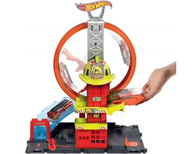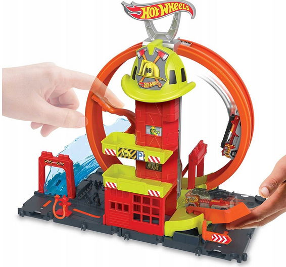 HOT WHEELS CITY ZESTAW TORÓW REMIZA STRAŻACKA SUPERPĘTLA + AUTKO NA PREZENT