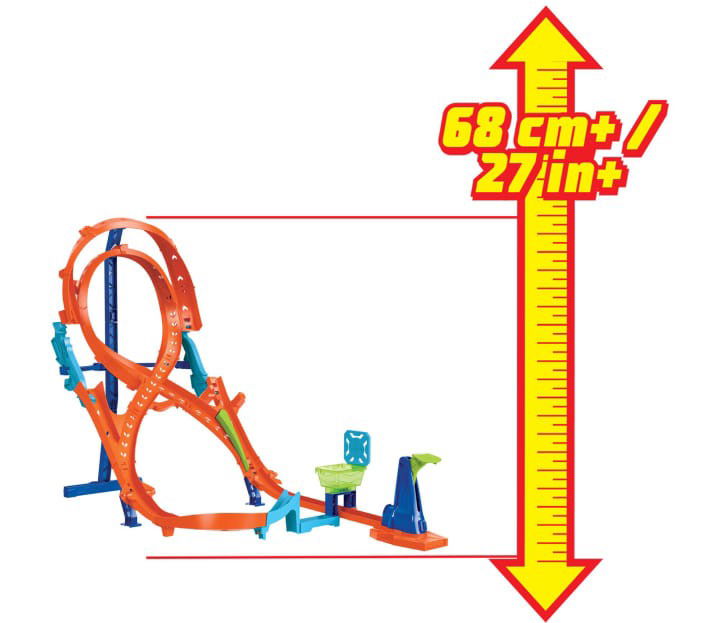 ⭐️Dostosuj przełącznik, zanim załadujesz wyrzutnię i wyślesz dołączony samochód Hot Wheels® na tor o wysokości ponad pół metra.