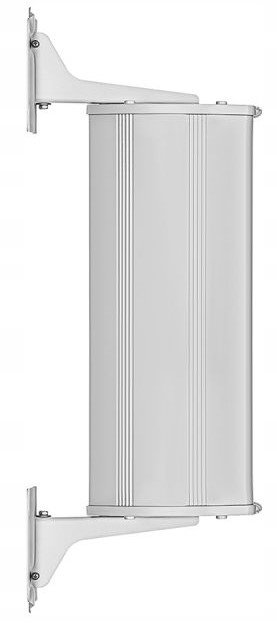 Obudowa głośnika wykonana została z wytrzymałego metalu z aluminiową maskownicą, co zapewnia odporność na uszkodzenia mechaniczne oraz długotrwałą eksploatację. W zestawie znajduje się również solidny uchwyt montażowy, który umożliwia szybki i bezpieczny montaż kolumny na ścianie.