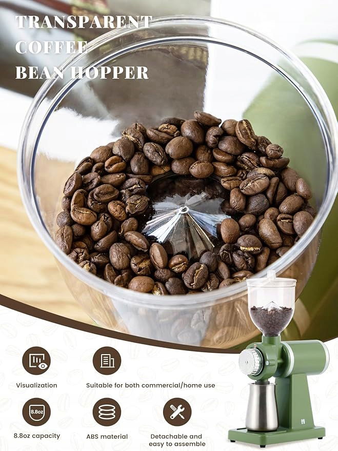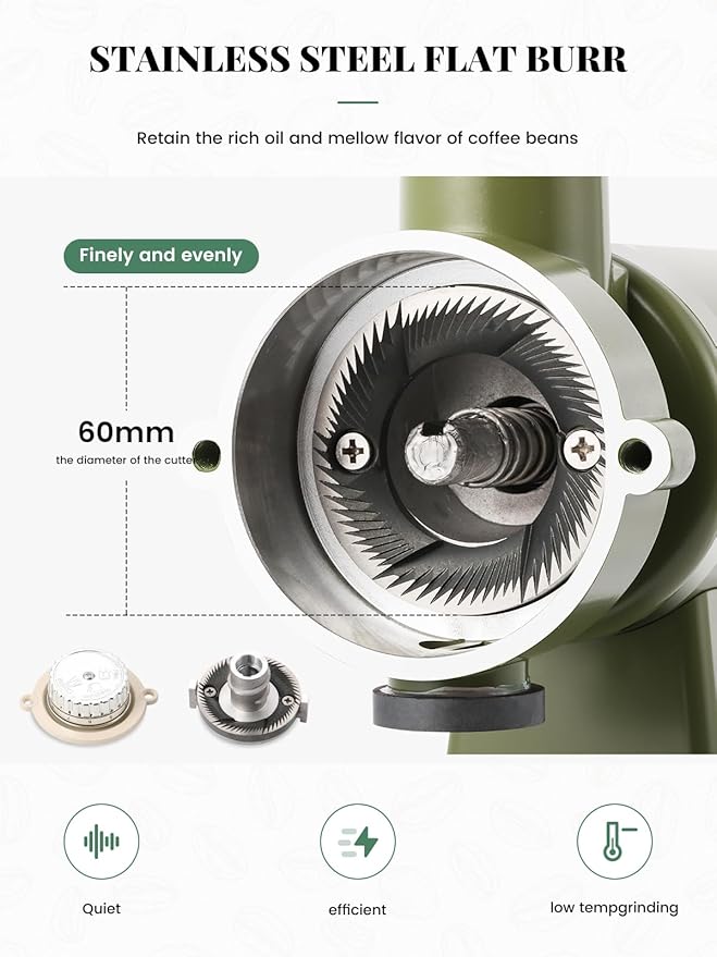 - 【Wydajny i trwały】Płaski zadzior ze stali nierdzewnej, 60 mm, równomiernie zmielony, może zatrzymać bogaty tłuszcz, a zaparzona kawa ma bardziej miękki aromat. Silnik o mocy 100 W, dobra wydajność, stabilny i wydajny, długa żywotność.