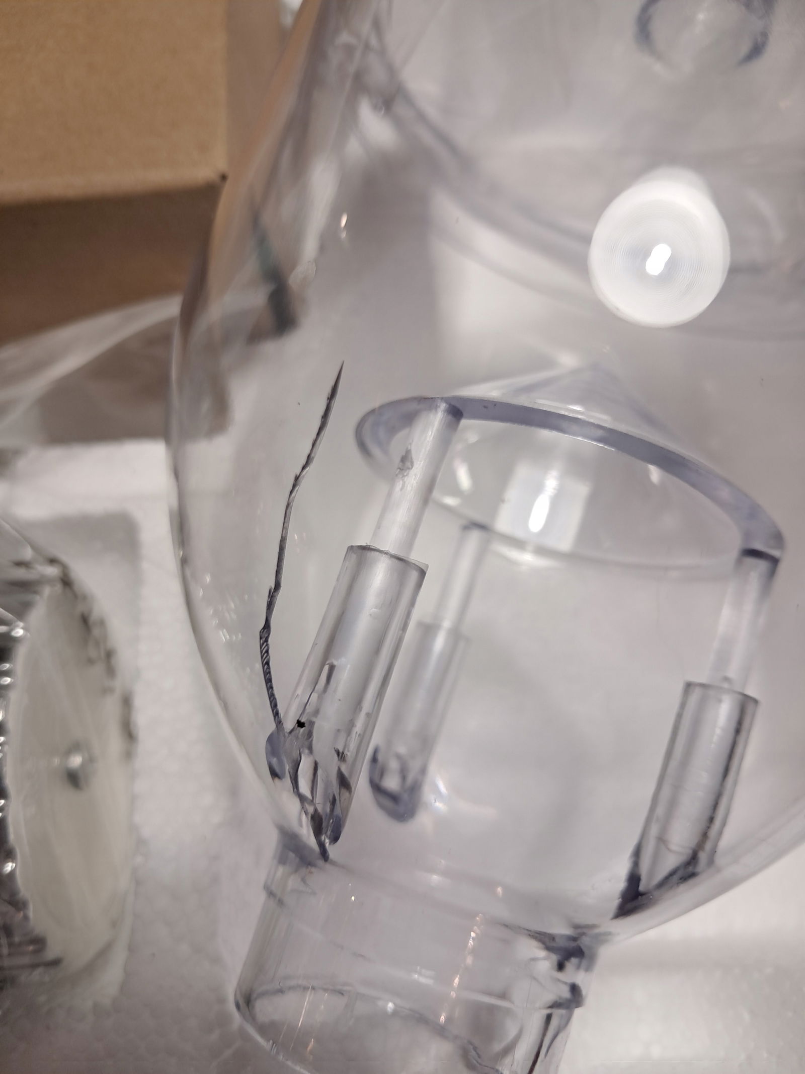 Produkt po zwrocie, minimalne ślady użytkowania, delikatne pęknięcie plastikowego zasypu (ostatnie zdjęcie).