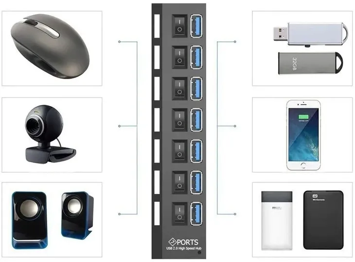 HUB USB jest rozwiązaniem problemu braku slotu USB na kolejne urządzenia, takich jak