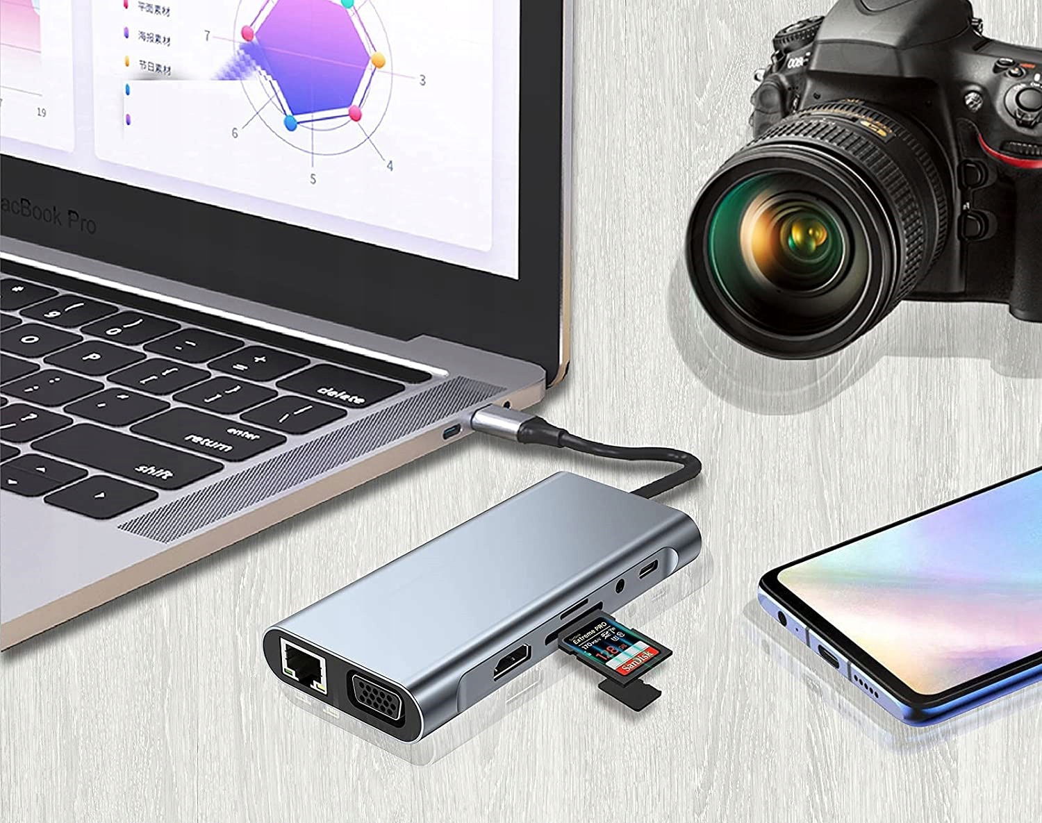 - [HDMI 4K i VGA] Wyjście HDMI i VGA może być używane jednocześnie do różnych urządzeń wyświetlających (monitor, telewizor, projektor), aby uzyskać żywe efekty synchronizacji wideo. Korzystaj z naszego inteligentnego koncentratora USB, aby rozszerzyć dwa monitory. Zapewnia szeroki zakres roboczy i elastyczność, aby rozwiązać każde zadanie. Maksymalna rozdzielczość wyjściowa osiąga 4K (3840 x 2160 @ 30 Hz) przez HDMI i 1920 x 1080 @ 60 Hz przez złącze VGA.