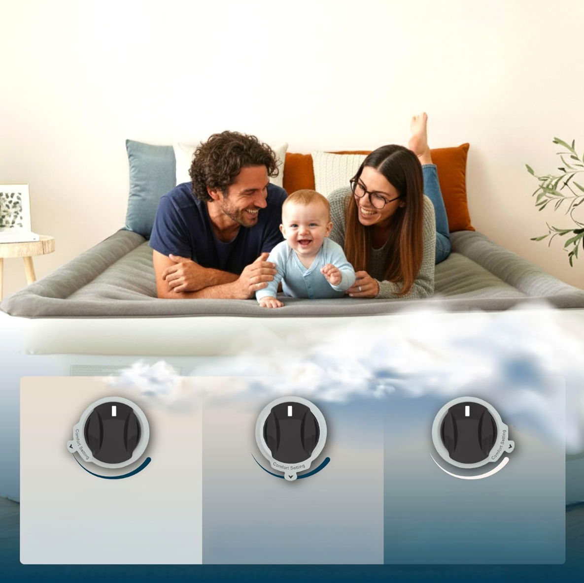 - ✴️Huddle Air Bed cechuje również wsparcie i indywidualna regulacja twardości, co czyni go idealnym wyborem dla różnych użytkowników. Wbudowana technologia Comfort I Carrier zapewnia stabilne wsparcie całego ciała oraz płaską powierzchnię do spania, sprzyjając lepszemu wypoczynkowi. Materac powietrzny można dostosować do własnych preferencji twardości poprzez wybór jednej z trzech wartości kompresji. W ten sposób, niezależnie od tego, czy preferujesz mocne wsparcie, czy nieco bardziej miękką powierzchnię, materac Huddle sprosta Twoim oczekiwaniom.