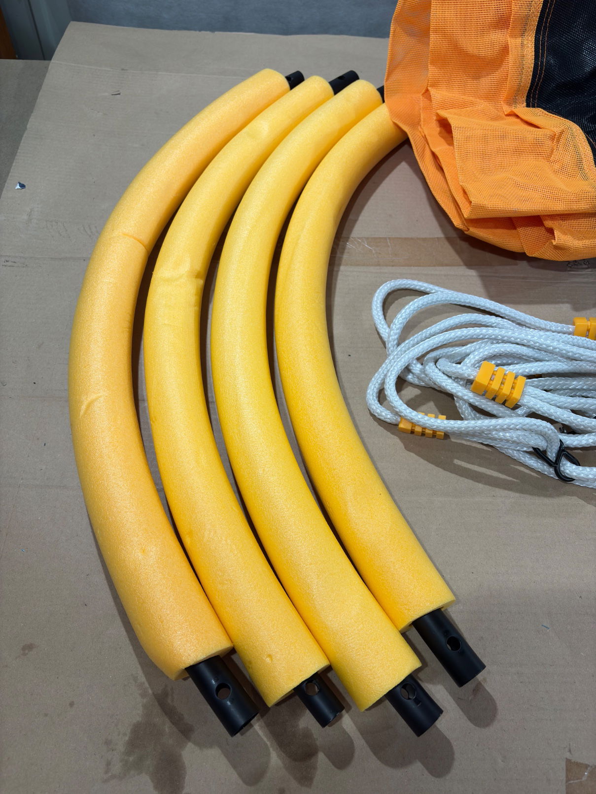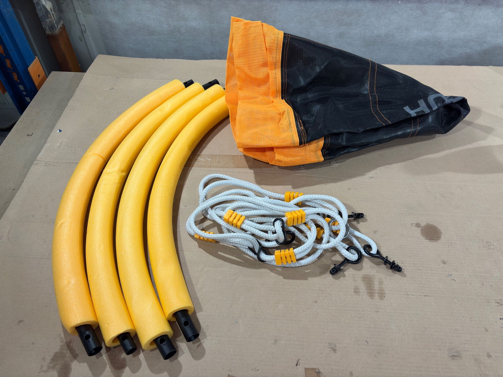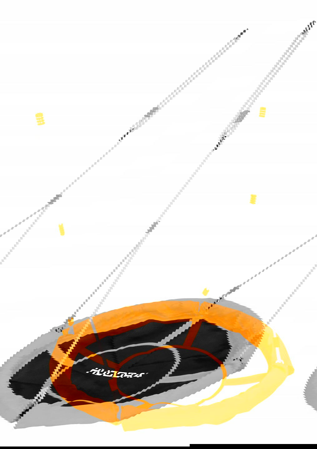 Gniazdo wykonane z wysokiej jakości polipropylenu, z wytrzymałej, wysokiej jakości plecionki z tworzywa sztucznego o średnicy 110 cm. Bezpieczny, zamknięty system zawieszenia, regulowana wysokość liny od 140 do 190 cm, w zestawie z regulowanym oczkiem i stalowym pierścieniem mocującym ze stali nierdzewnej. Maksymalne obciążenie: 100 kg. Waga produktu ok. 4,5 kg