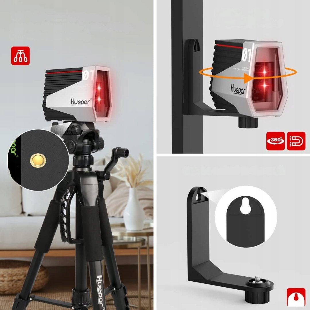 Laser: Trzy tryby z czerwonym promieniem: poziomy / pionowy / krajobrazowy