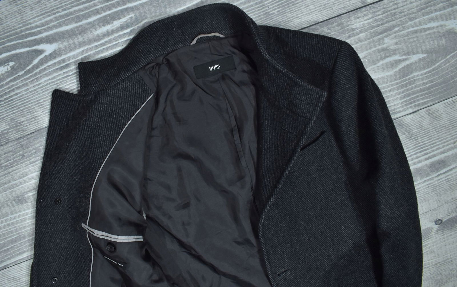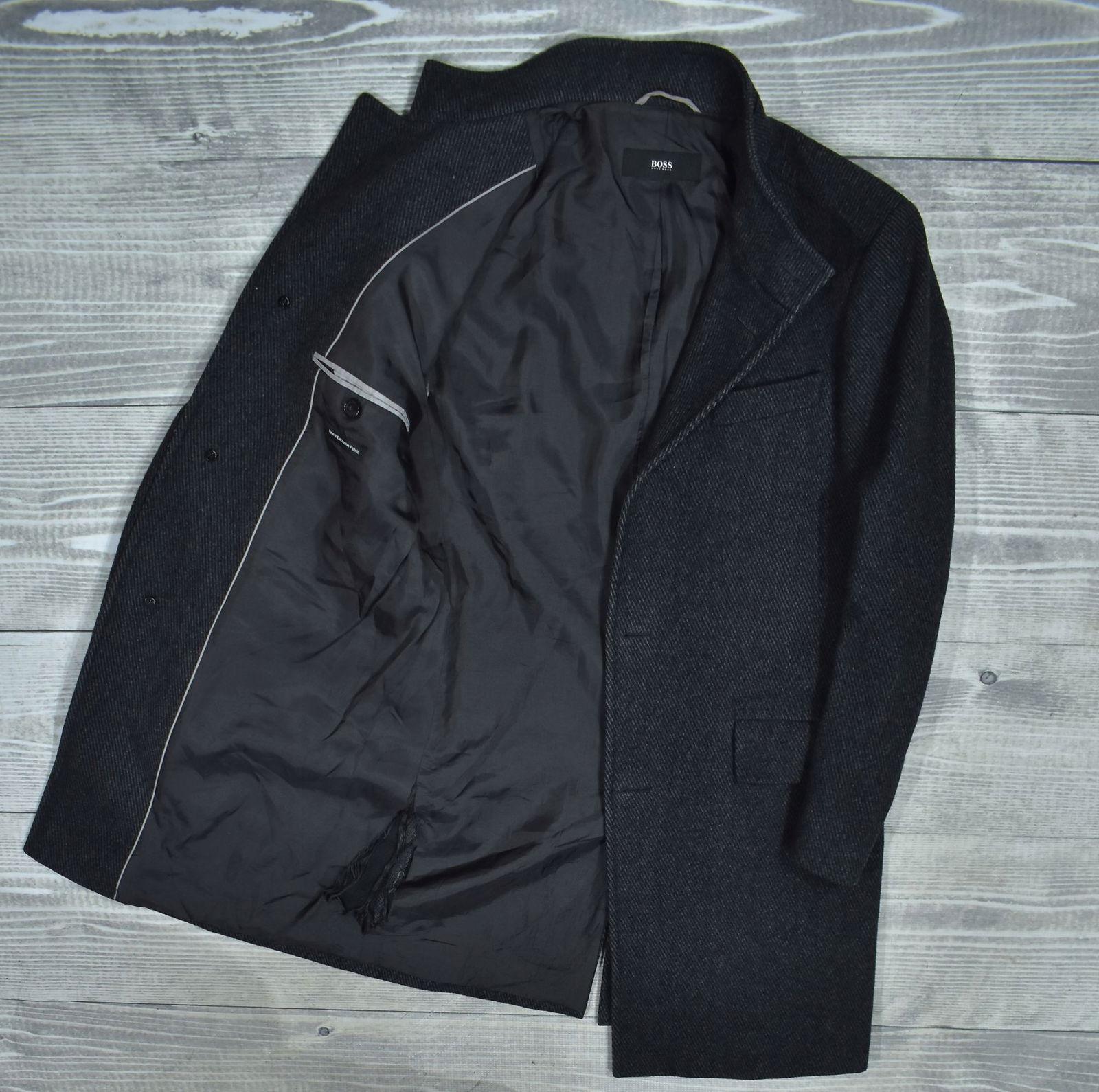 HUGO BOSS Sintrax 4 Szary Jednorzędowy Wełniany Płaszcz Męski 48