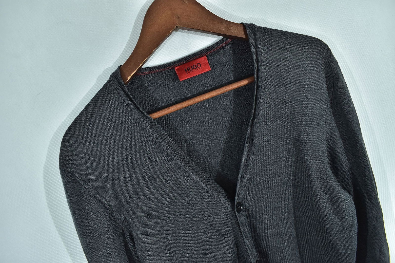 Przedstawiamy szary wełniany sweter męski kardigan renomowanej marki Hugo Boss, dostępny w rozmiarze M. Ten wyjątkowy element odzieży jest idealny dla mężczyzn ceniących sobie elegancję oraz komfort. Sweter został użyty, ale znajduje się w bardzo dobrym stanie, co czyni go doskonałym wyborem dla osób poszukujących wysokiej jakości produktów w atrakcyjnej cenie.