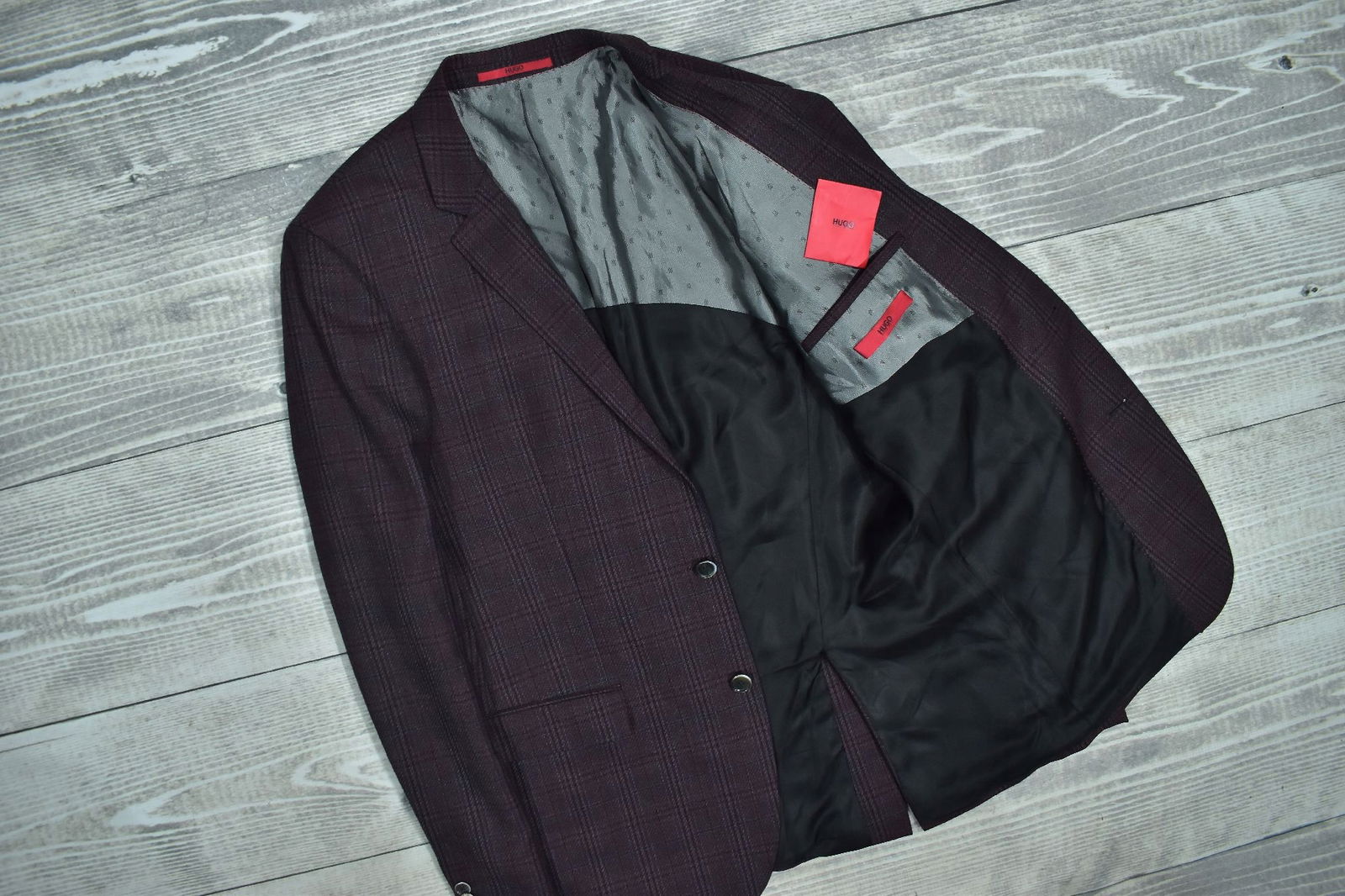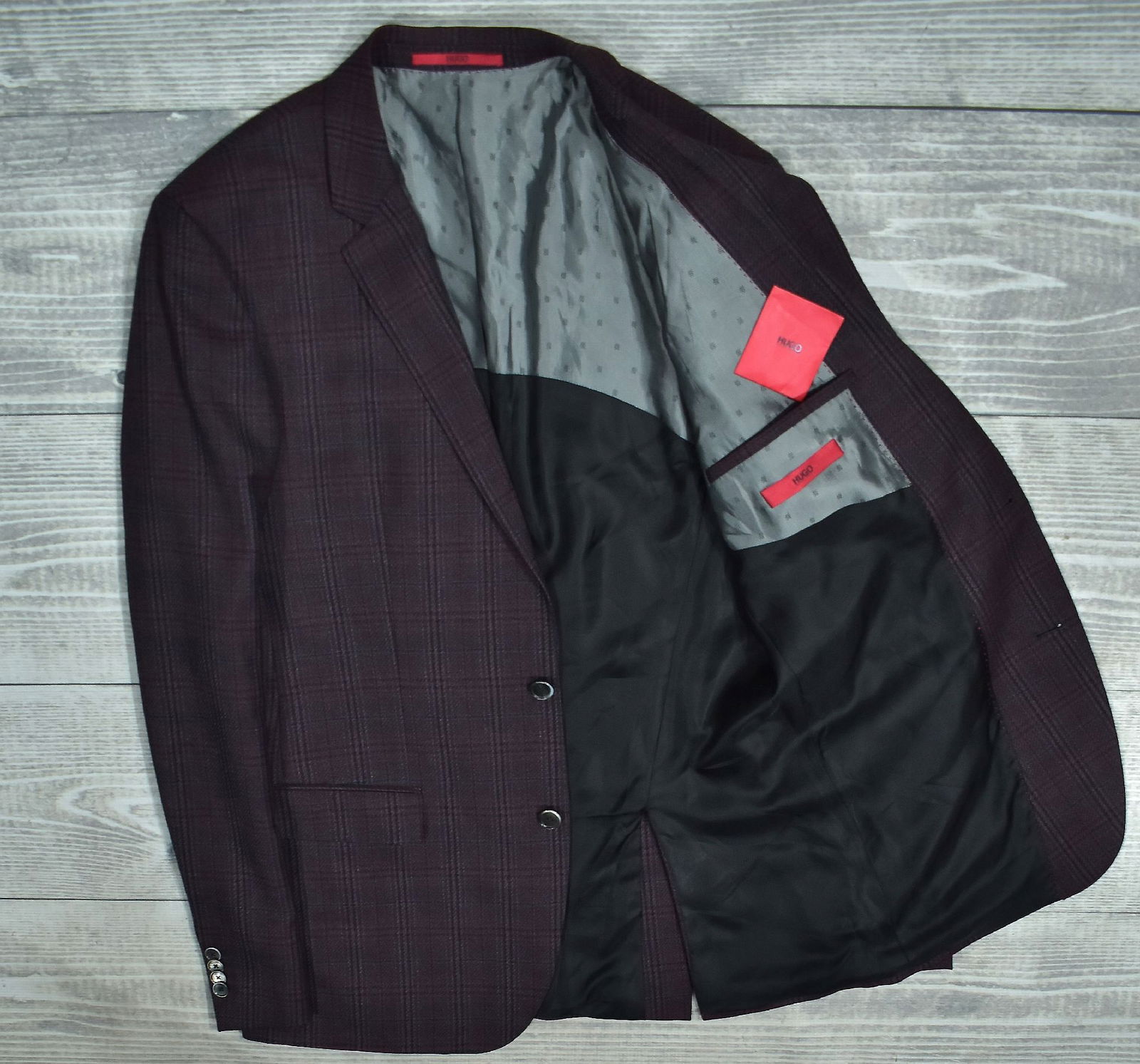 HUGO BOSS Wełniana Bordowa w Kratkę Marynarka Męska 102
