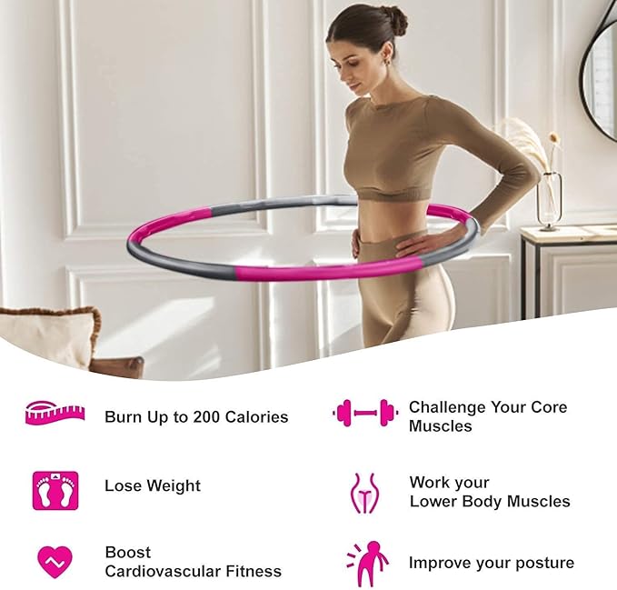 Skuteczny sposób na spalanie kalorii, utratę wagi, poprawę kondycji, poprawę postawy i nie tylko. Uwaga: nie używaj obręczy, jeśli jesteś w ciąży, jesteś osłabiona lub masz problemy ze stawami, plecami lub biodrami. hula hop fitness to idealne akcesorium treningowe, które pozwala spalić kalorie, przyspieszyć spalanie tłuszczu, wzmocnić mięśnie tułowia i ujędrnić obszary ciała, takie jak brzuch czy pośladki.