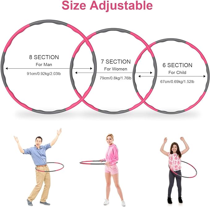 Hula Hop zostało zaprojektowane z myślą o możliwości jego złożenia w celu zaoszczędzenia miejsca podczas przechowywania. Koło składa się z 8 elementów, dzięki czemu z łatwością możesz złożyć koło po skończeniu ćwiczeń i zaoszczędzić miejsce.