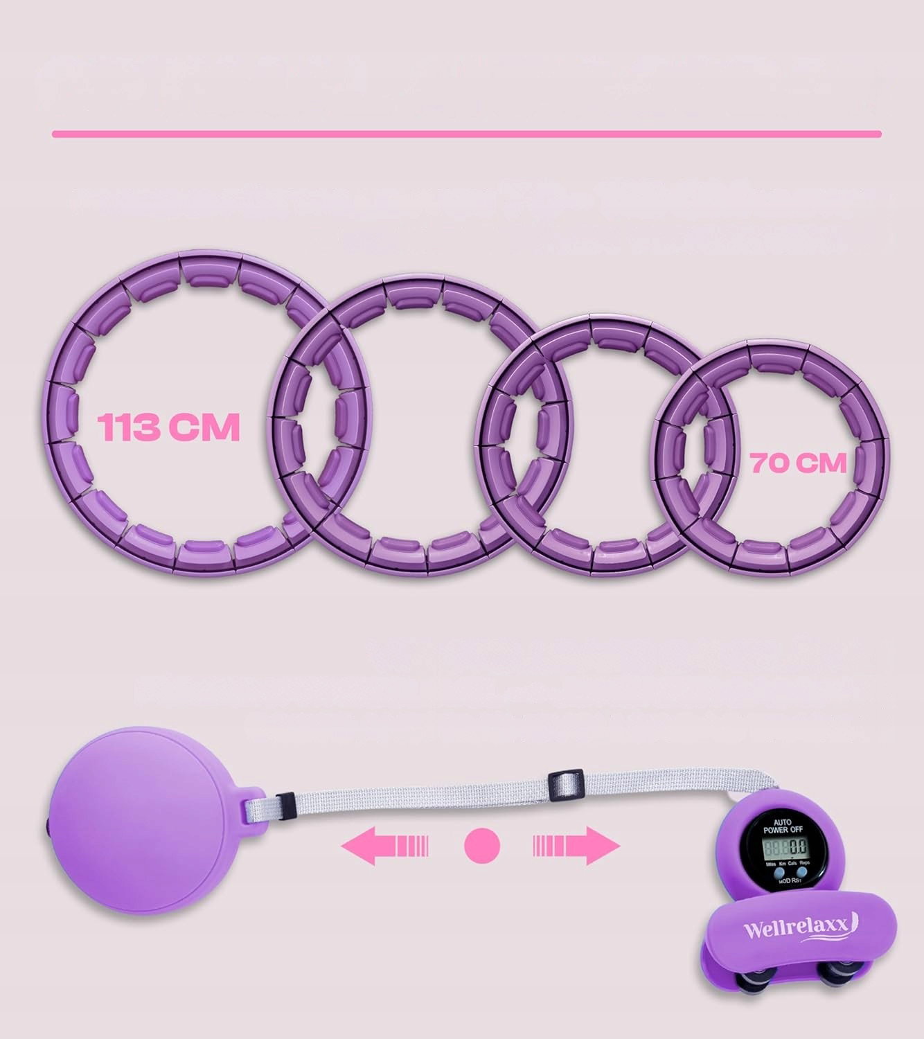 Smart hula hop cicha z licznikiem | hula hop z kulką obciążającą | obwód 70-113 cm | hula hop dla dorosłych | hula hop do odchudzania | hula hop do odchudzania z paskiem do odchudzania