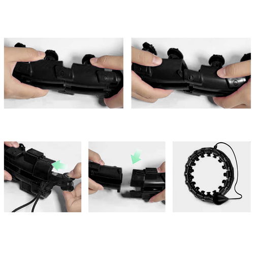 - Upewnij się, że hula hop jest prawidłowo złożone, a wszystkie elementy (segmenty) są stabilnie połączone. Przed użyciemsprawdź, czy wszystkie zaczepy są mocno zaciśnięte, aby zapobiec jego rozpadnięciu się podczas ćwiczeń.- Jeśli dopiero zaczynasz używać hula hop z masażerem i obciążnikiem, zaczynaj od krótkich sesji (ok. 5–10 minut), aby dać ciałuczas na przyzwyczajenie się do nacisku masażerów.- Stopniowo wydłużaj czas ćwiczeń i zwiększaj intensywność, aby uniknąć przeciążenia mięśni i siniaków.- Ćwicz w pozycji wyprostowanej, lekko zgięte kolana i stabilne stopy, aby zminimalizować ryzyko kontuzji pleców lub bioder.Unikaj zbyt gwałtownych ruchów.- Jeśli odczuwasz ból lub dyskomfort w trakcie ćwiczeń, zmniejsz intensywność lub przerwij trening. Nadmierny nacisk masażerów iobciążnika może powodować siniaki, zwłaszcza u osób początkujących.