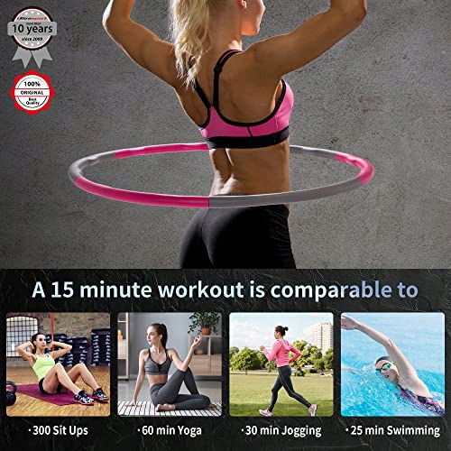 Ultrasport Hula Hoop, for Strengthening the Back and Abdominal Muscles, 6 Interlocking Parts, Soft Foam, Fewer Bumps, for Beginners and Advanced Users Color : Pink / Gray