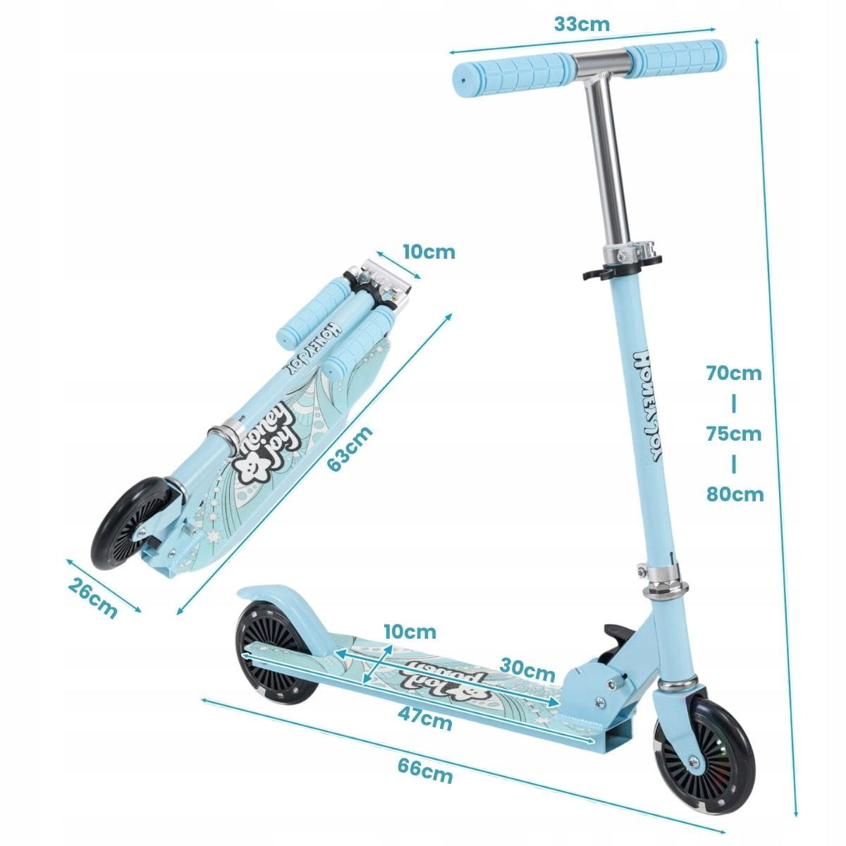 Hulajnoga dla dzieci z regulowaną kierownicą i LED kołami, składana, niebieska