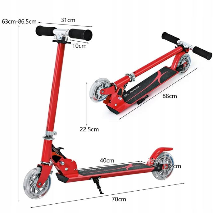 Hulajnoga dziecięca LED składana 2 koła regulacja wysokości 70kg