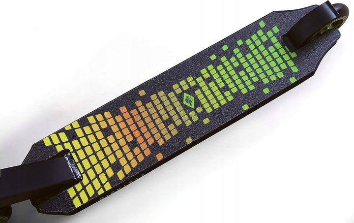 Podest z utwardzanego aluminium (6061), podest w rozmiarze XL zapewniającym stabilne oparcie (50x11 cm), odporna na skręcanie konstrukcja potrójna ze szlifowanymi krawędziami i antypoślizgową taśmą antypoślizgową, wysokowydajne hamulce zapewniające bezpieczne hamowanie