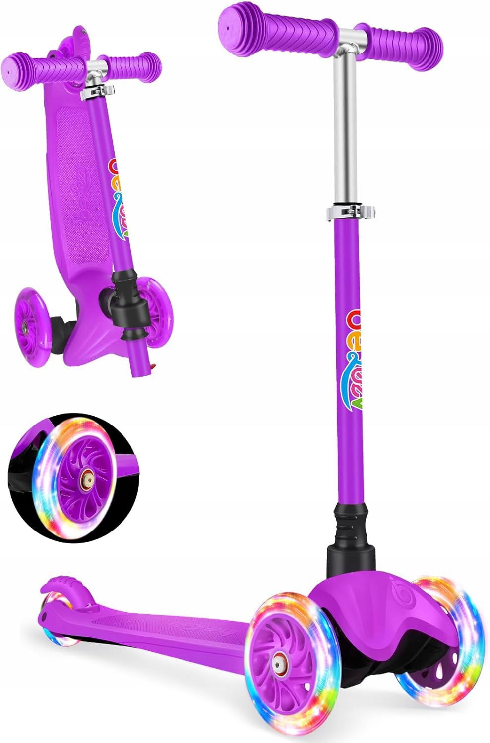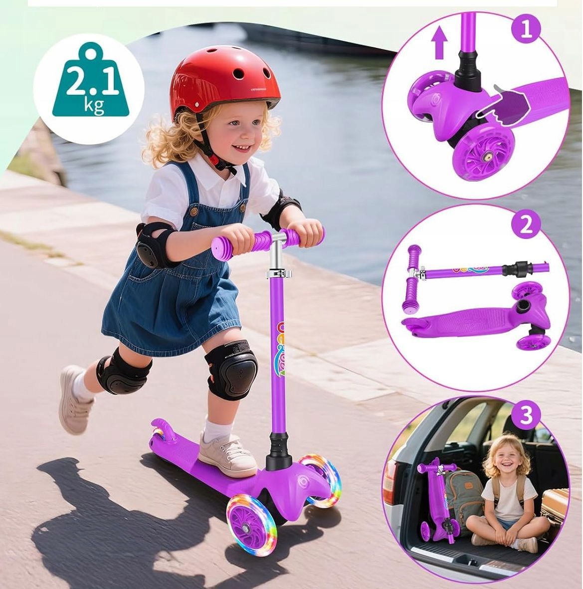 Oświetlone koła LED: oświetlenie kół napędzane jest samodzielnym ruchem dziecka, nie potrzebujesz baterii! Oświetlenie sprawia, że pojazd jest dobrze widoczny zarówno w ciągu dnia, jak i w pochmurnych dniach – idealne, aby zwiększyć bezpieczeństwo podczas każdej jazdy! Kolorowe, żywe światła dodają dodatkowej frajdy z jazdy