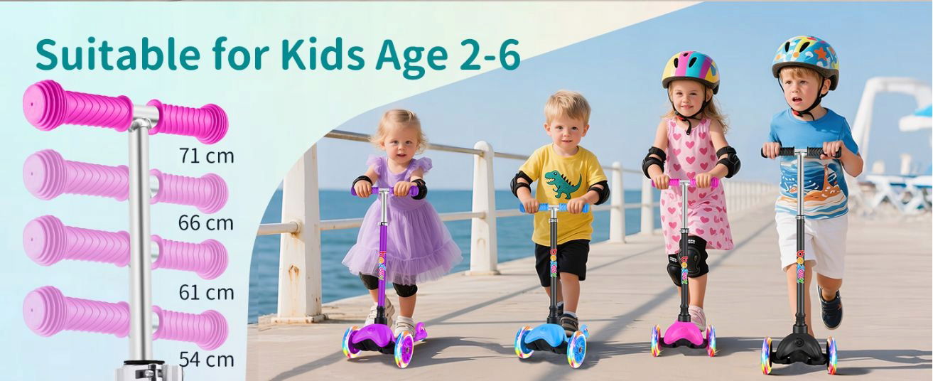 - Regulacja wysokości: Kierownica jest regulowana, dzięki czemu hulajnoga rośnie razem z dzieckiem, służąc przez wiele sezonów.