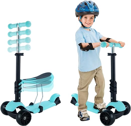 Zdejmowane siedzisko z regulacją wysokości: ta hulajnoga 2 w 1 została zaprojektowana tak, aby dzieci mogły poruszać się do przodu, siadając jako pierwsze. Gdy dziecko podrośnie, krzesełko można zdjąć, aby stało i zsunęło się. Kierownica posiada 4 opcje regulowanej wysokości. Odpowiedni dla dzieci w wieku od 2 do 10 lat o nośności 50 kg.