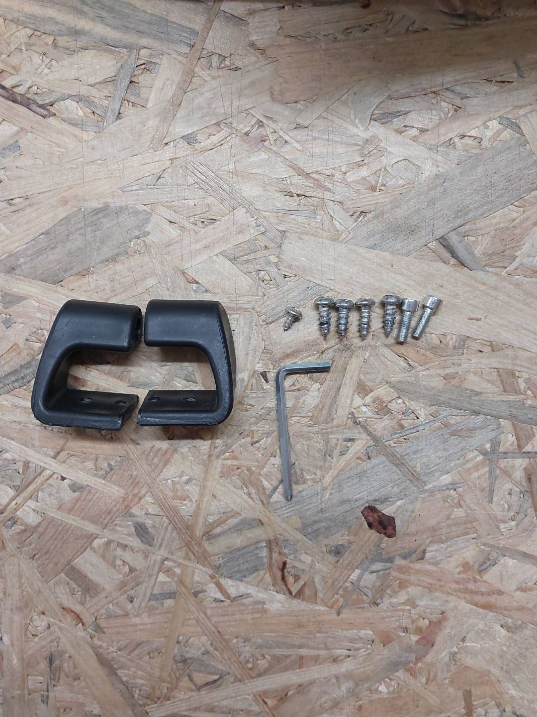 BRAKUJE JEDNEJ ŚRUBKI DO KIEROWNICY, BLOKADY PODPÓRKI POD SIODEŁKO, LEKKO STARTE KOŁA I DELIKATNE ZABRUDZENIA NA PODEŚCIE .