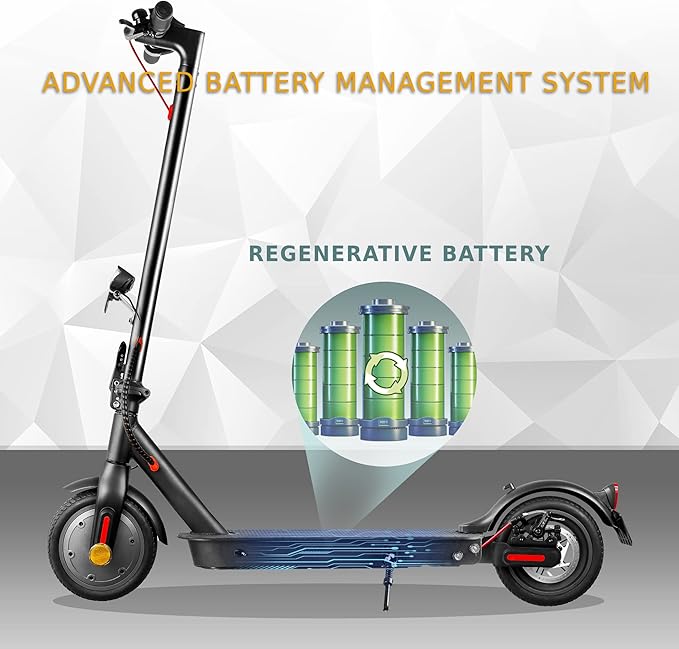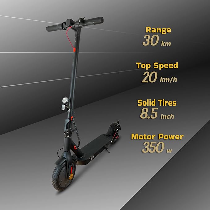 Pełne gumowe opony i podwójny układ zawieszenia – hulajnoga elektryczna ma 8,5-calowe opony z pełnej gumy, które są bardziej elastyczne i odporne na zużycie niż opony o strukturze plastra miodu. Podwójny układ zawieszenia tylnego koła zapewnia komfort i zapobiega przebiciu opon.