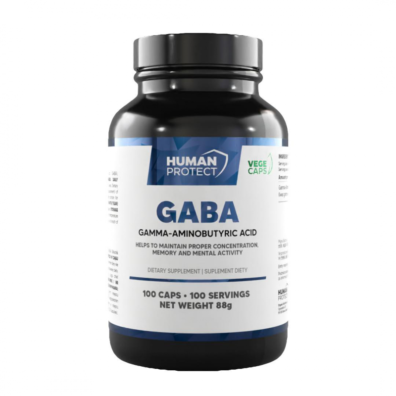 Human Protect GABA 750mg to suplement diety zawierający kwas gamma-aminomasłowy (GABA), aminokwas, który działa jako neuroprzekaźnik w mózgu.