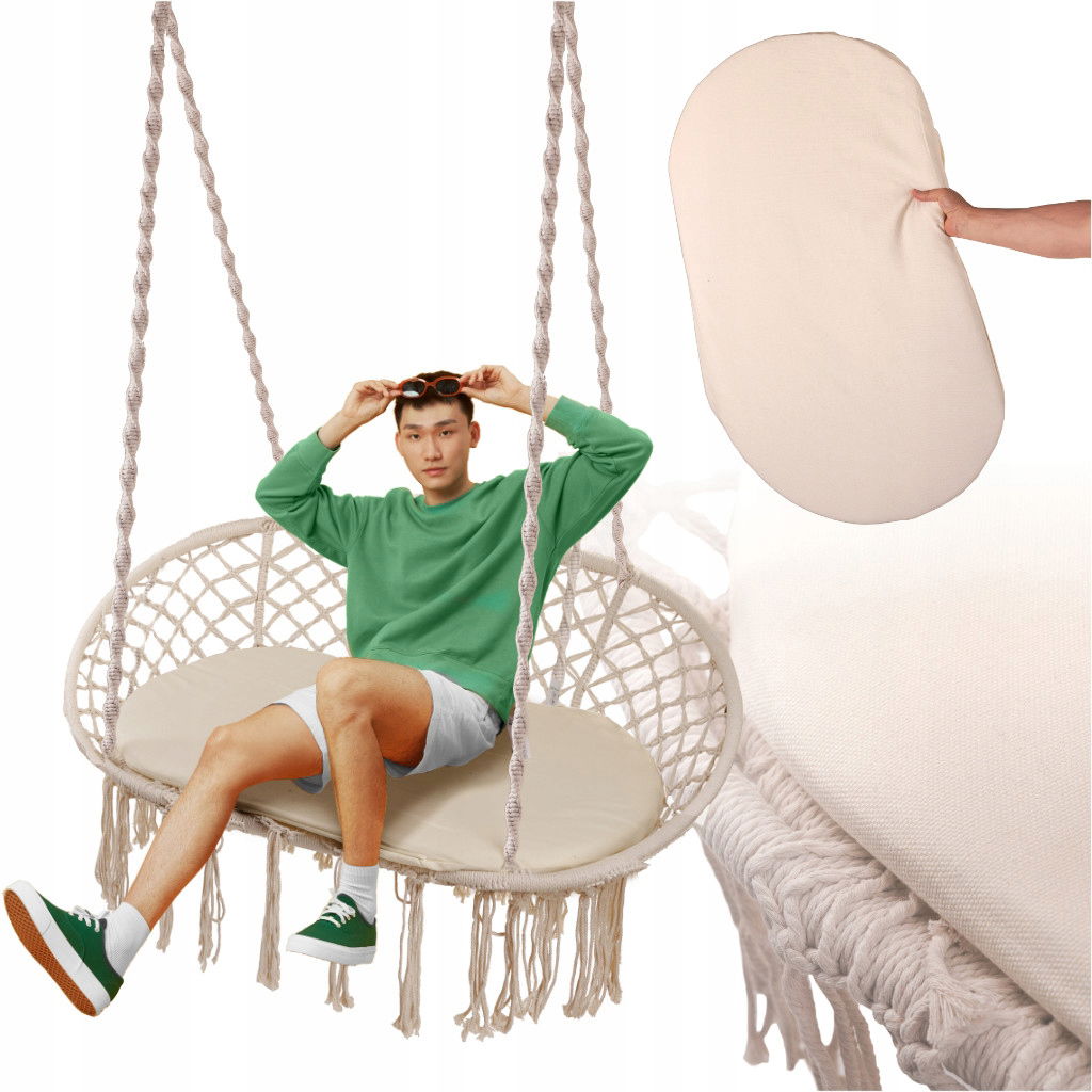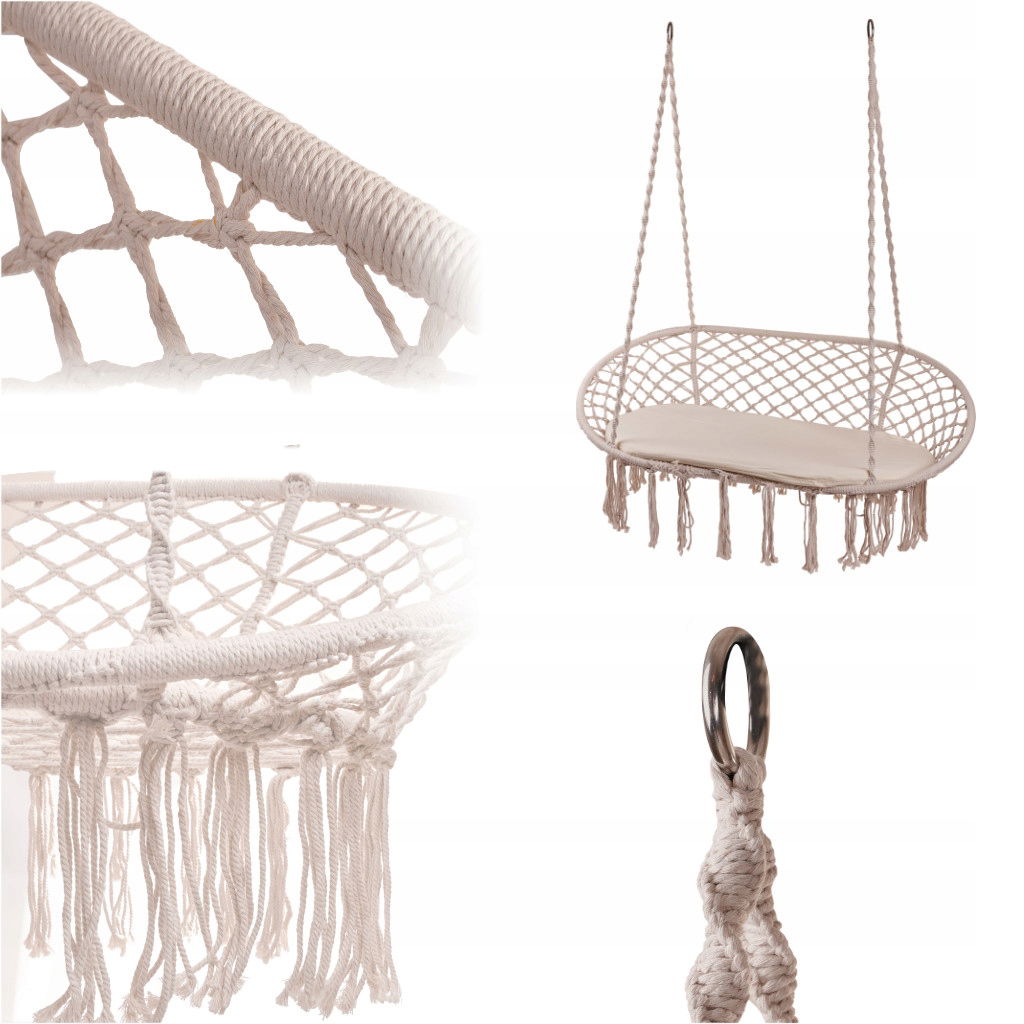 Huśtawka bocianie gniazdo podwójne dwuosobowe z frędzlami beż 240kg