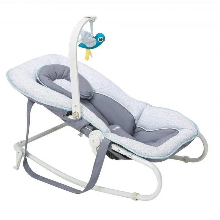 Wygodny leżaczek dla dziecka z regulowanym oparciem. Regulowany i odłączany pałąk z jedną zabawką. Wymienny zagłówek zapewniający optymalne wsparcie głowy. Pas trzypunktowy. Paski ułatwiające przenoszenie. Może być nastawiony do stałej pozycji lub używany jako podstawka. Szybko i łatwo się składa. Zajmuje niewiele miejsca po złożeniu. Miękką wkładkę, można usunąć i umyć.