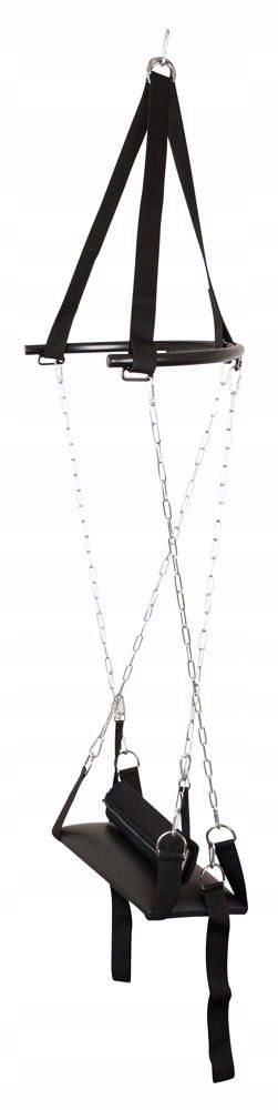 Czarna huśtawka miłosna z siedziskiem, oparciem i zdejmowanymi pętlami na nogi. Odpowiedni dla stylu psa i pozycji misjonarza. Możliwość obciążenia do 100 kg. Brak akcesoriów montażowych.