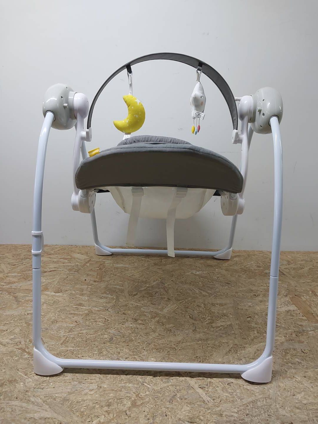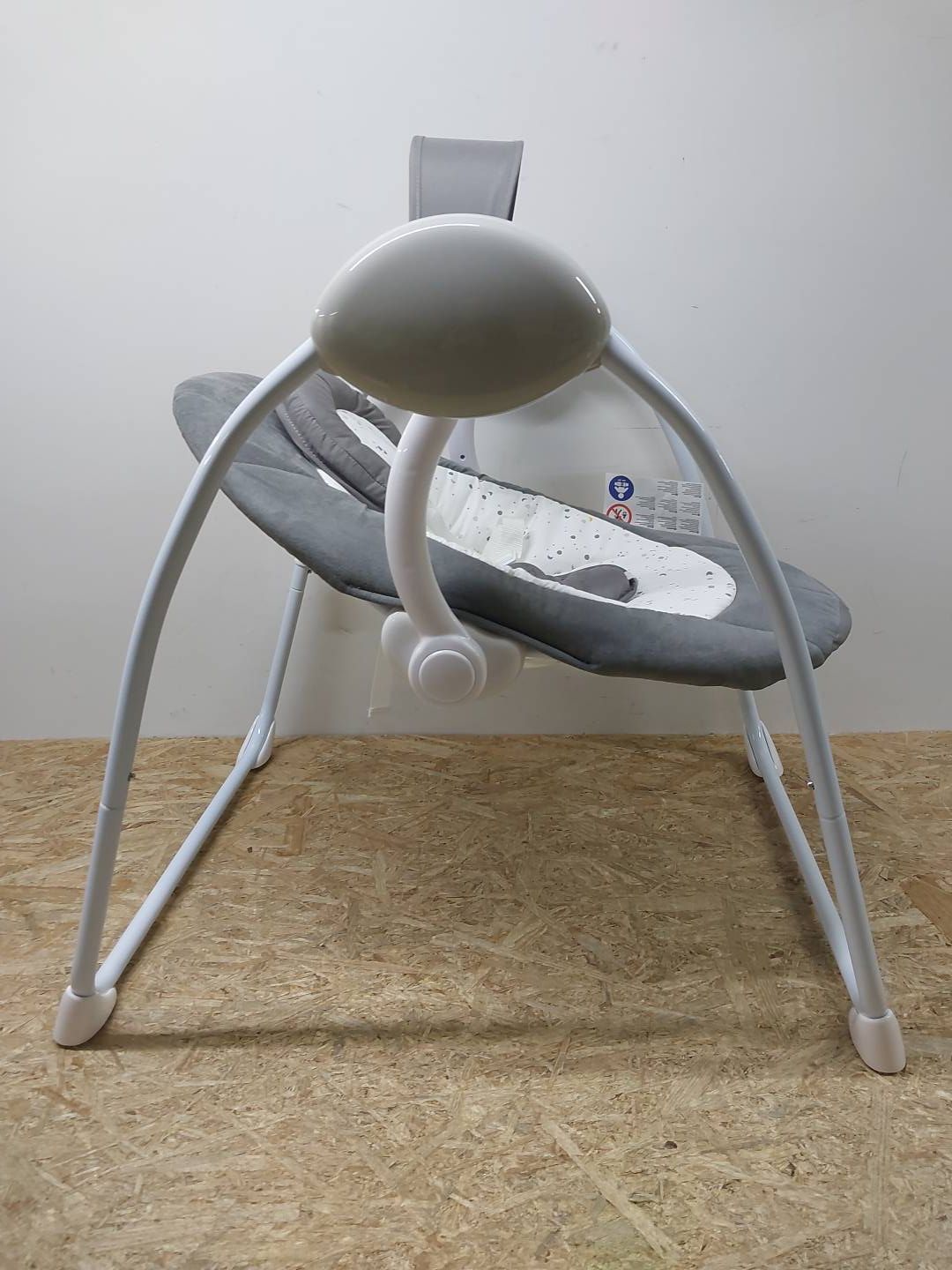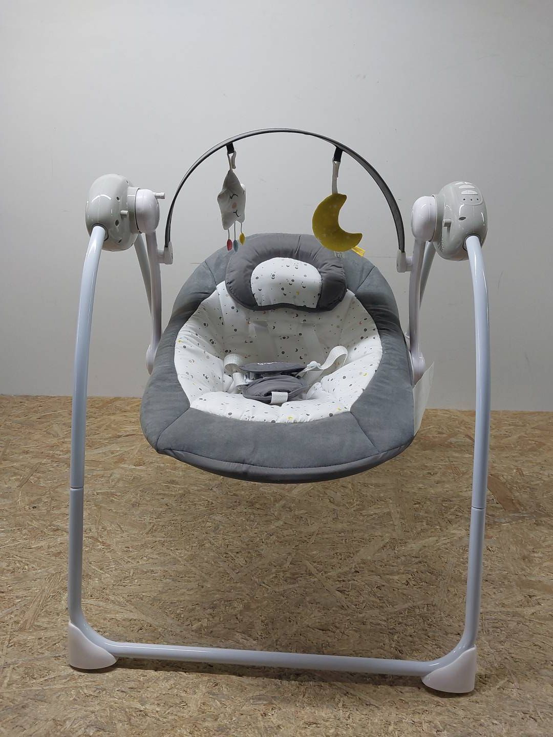 Leżak-huśtawka dla dzieci od urodzenia do maksymalnie 9 kg. Huśtawka oferuje 5 prędkości i 12 melodii. Siedzisko jest regulowane. Zasilanie za pomocą baterii 4× 1,5V AA (brak w zestawie) lub zasilacza sieciowego (brak w zestawie).